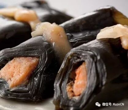 一种乡土料理,把鲑鱼肉卷在昆布里,学业进步等寓意。