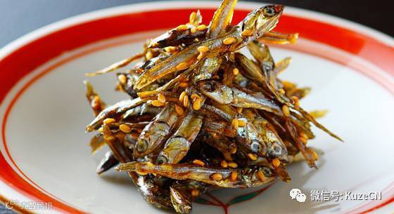 沙丁鱼的仔鱼干,用酱油砂糖等调味料煮制,咸里偏甜,也很有嚼头。别名叫五万米,寓意五谷丰登。
