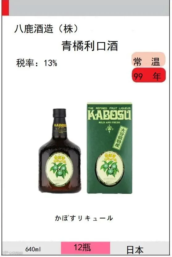 原料选用大分县产水果青橘,浓郁果香的利口酒。