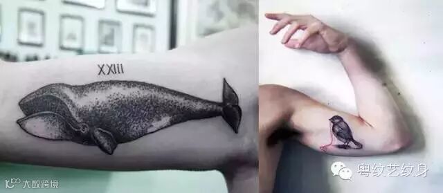 谋网站的统计指出,第一次纹身的人通常会选择手臂、手腕、腿、手指、肩背这5个部位。如果想要自己的第一次与众不同,往下看着5个部位有什么特别的、不俗气的黑白图案可纹。