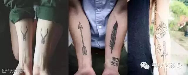 小臂可能对很多第一次纹身的人来说还是有点大了点和复杂了点,那么大臂的纹身会使一个很好的选择。大臂通常会选择一线简单、较小的图案,而且能用T恤把他遮盖住(害怕被父母看到的人都了这!)不信可以看看:
