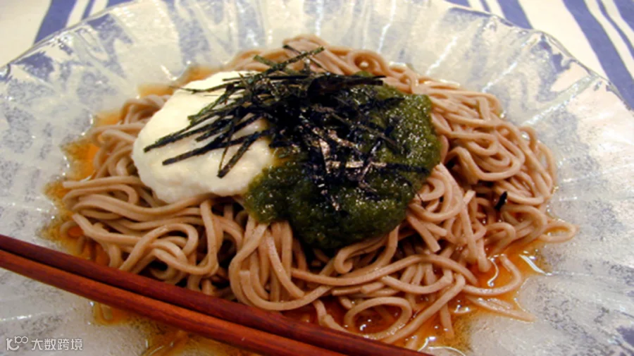 裙带耳丝 30g、速冻山药泥 30g、切丝海苔 1g、皇家杜老爷荞麦面1片、和风露调味汁 40g、水 80ml