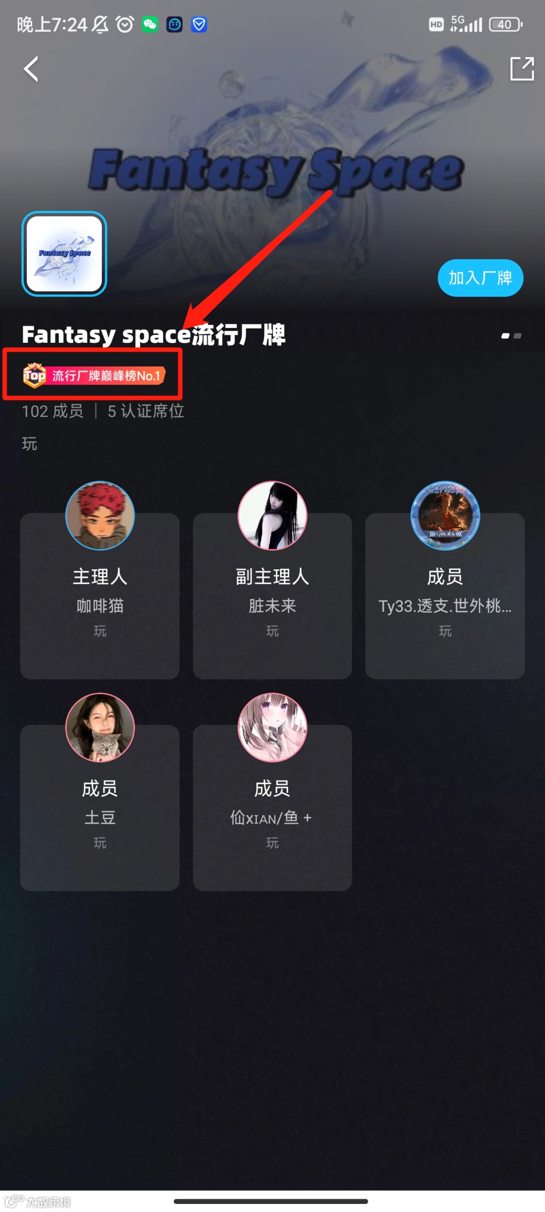 方法三:点击任意社团档案中的,排名TOP标识,即可进入社团/厂牌巅峰榜单;