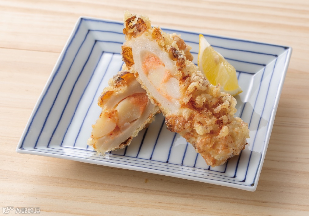 4、将②裹上③,入油(180℃)炸约3分钟。