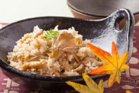 大米 300g、水 适量、昆布汁 23ml、酒 20ml、酱油 10ml、鸡腿肉 100g、油炸豆腐 1片、胡萝卜 15g、牛蒡 15g、舞茸 1盒
