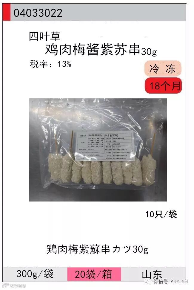 主要原材料 鸡肉、紫苏、梅酱、面包粉、水、小麦粉