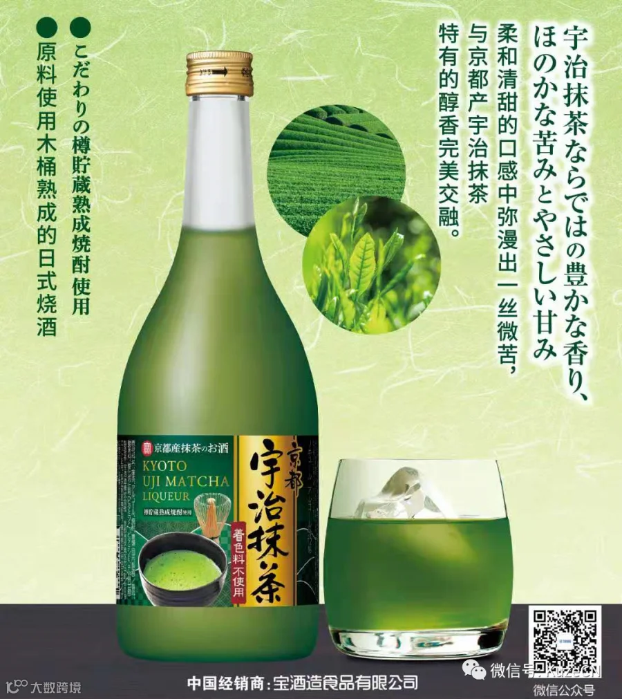 柔和清甜的口感中弥漫出一丝微苦,与京都产宇治抹茶特有的醇香完美交融。原料使用木桶熟成的日式烧酒。