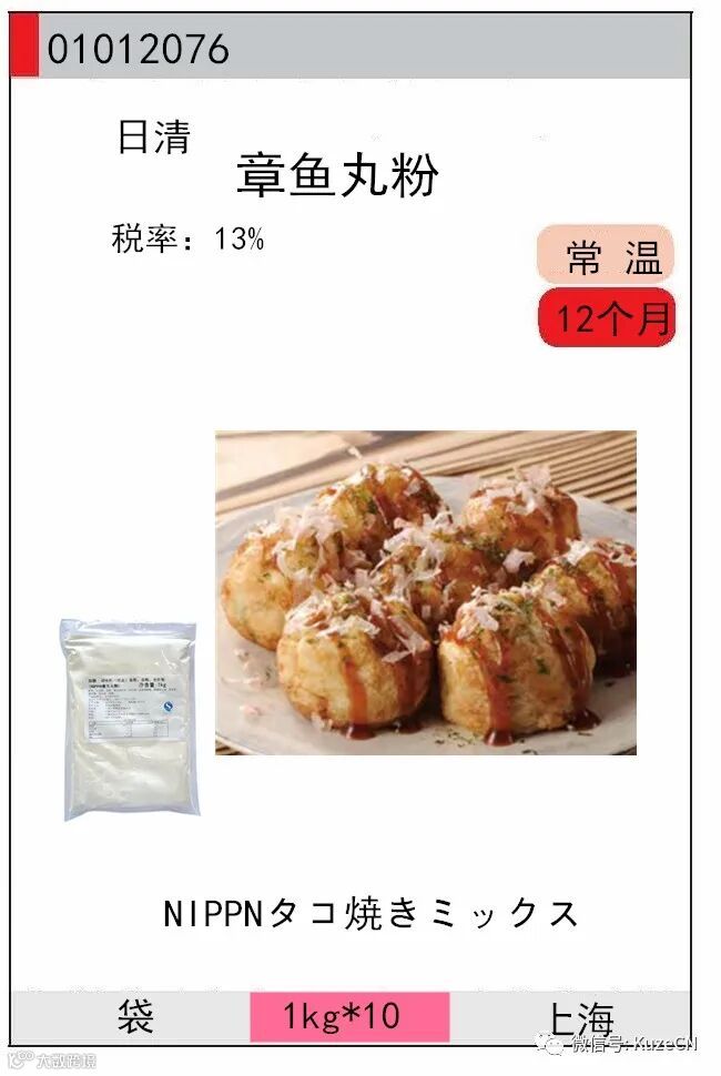 预拌粉 500g、鸡蛋 125g、水 1500g、色拉油 50g、面汤汁 50g、章鱼粒 1颗、青葱(颗粒) 适量、炸面包屑 适量、红生姜 适量