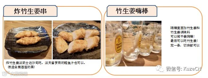 切片作为寿司生姜,酱菜拼盘(下酒菜),生姜嗨棒,炸生姜。竹生姜比较嫩,没什么纤维。可开袋即食。