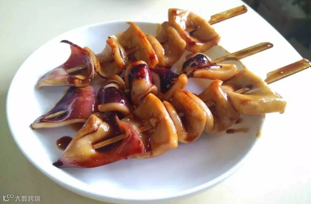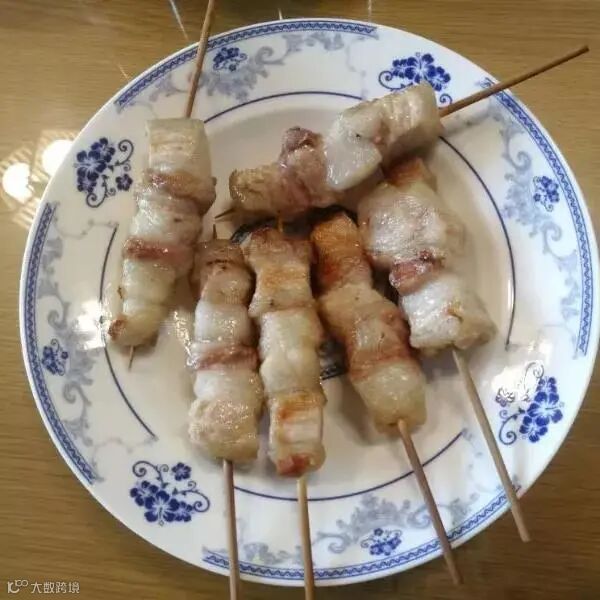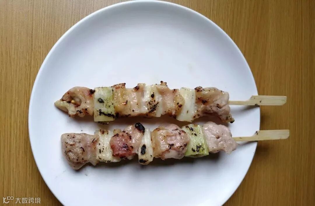 2:五花肉串和猪肩肉串烤制大约5-6分钟。