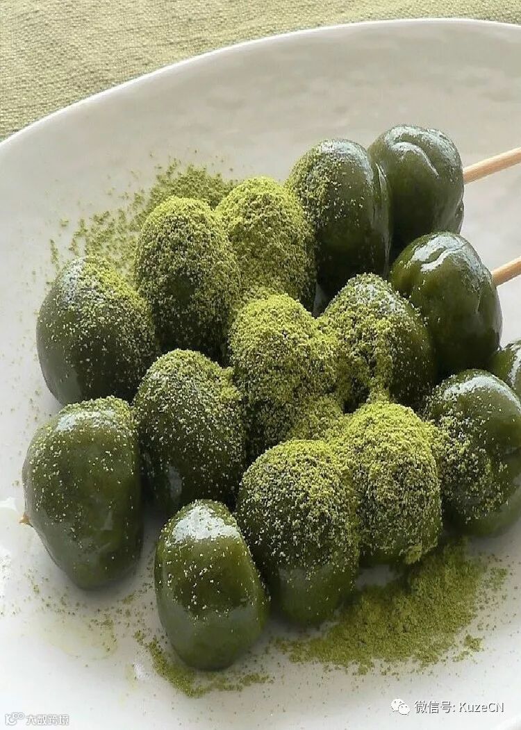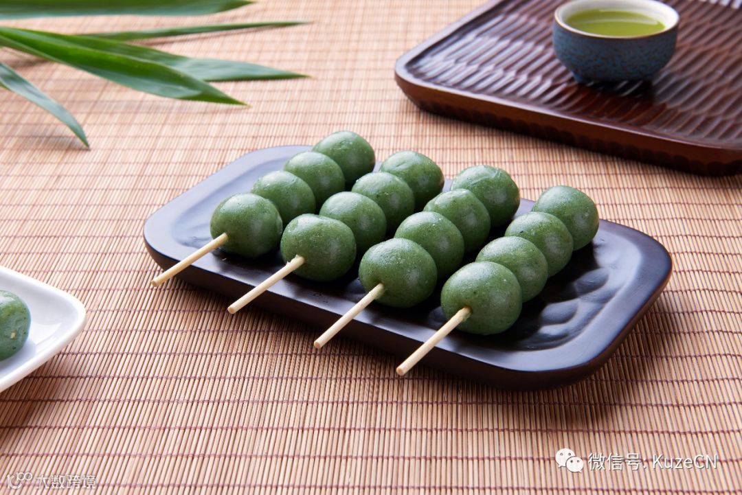 翠玉丸子串:日式丸子中融入艾草,口感软糯带有清香。可搭配抹茶粉、黄豆粉、芝麻粉等等,或者作为冰淇淋的装饰。