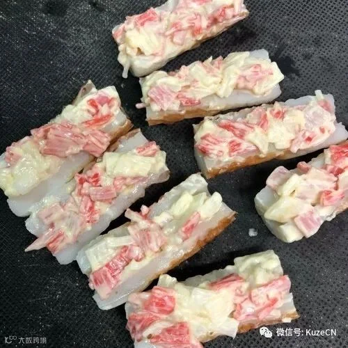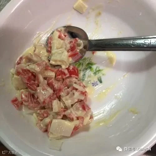 蟹肉棒里加入色拉酱、芥末酱混合