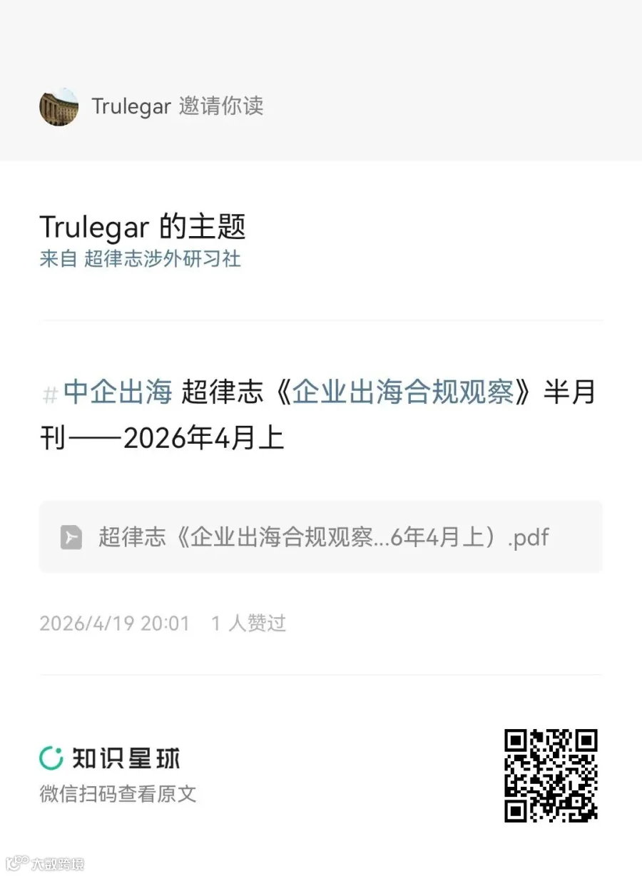 2. 提升涉外实务能力:精选各国涉外政策解读、行业合规指南、实务白皮书等,直击出海企业与法务痛点。