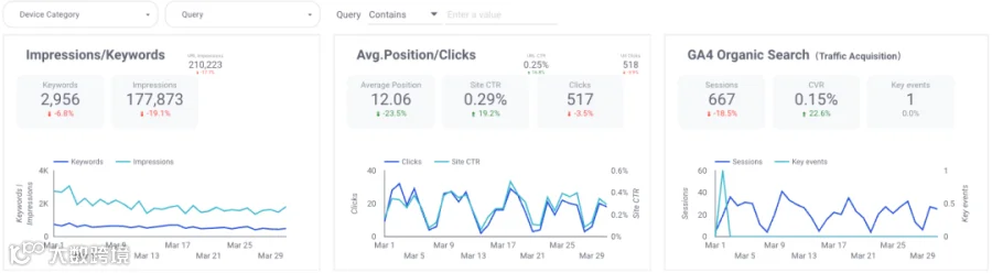 该方案支持高度自定义:可按页面、关键词、时间段等维度拆解数据,直观呈现各区域表现差异,便于精准决策。