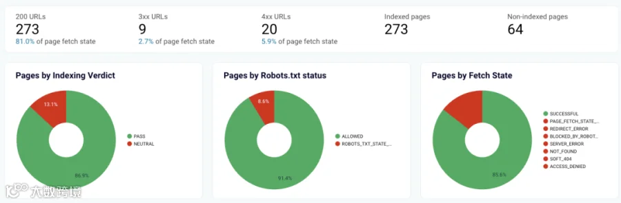 进一步还可接入Search Console技术报告,监控索引异常、抓取错误、移动适配等问题,以饼图等形式直观呈现问题分布。