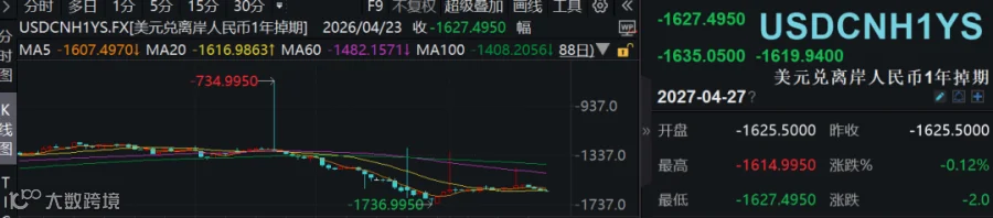 当前人民币与美元利率深度倒挂,远期美元兑人民币处于贴水状态。以2026年3月数据为例,3个月期远期平均贴水0.57%,年化成本约2.26%。企业锁定远期结汇汇率低于即期,直接产生汇兑损失。