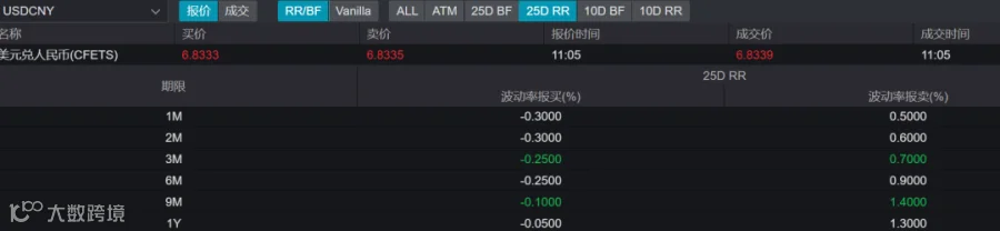 风险逆转期权(Risk Reversal)成为高性价比选择。RR正值窗口下,卖出看涨期权获取的较高期权费可补贴买入看跌成本,实现零成本或极低成本锁定结汇区间。该策略优势在于规避远期贴水、操作灵活且期权费低。