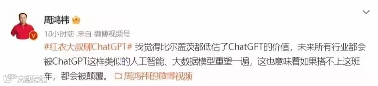 刷微博的时候看到红衣大炮周鸿祎对 ChatGPT 和 AI 的观点,不能再同意了。