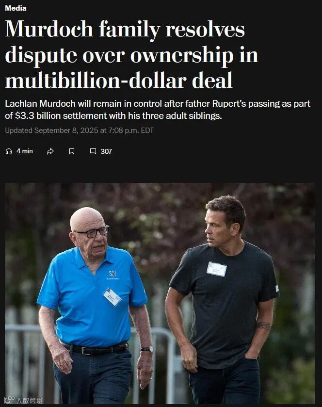 94岁的鲁伯特·默多克以33亿美元的代价,确保其保守派媒体帝国在他身后不会分裂或倒向自由派。