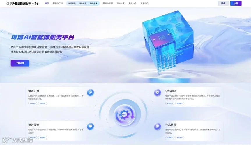 中国信息通信研究院(简称“中国信通院”)可信AI智能体服务平台是集共性技术与工具、可信评测、标准规范、生态运营于一体的普惠性公共基础设施,针对智能体领域技术创新、场景落地、生态协同等关键挑战,平台围绕智能体“研、测、用、管、联”全生命周期,构建五大核心服务能力,具体如下: