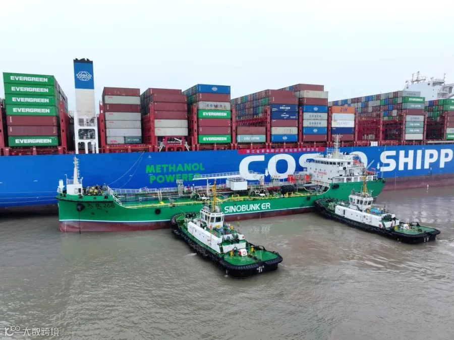4月22日,加注船“大庆268”轮在宁波舟山港梅山港区,向靠泊的“中远海运天秤座”轮完成保税绿色甲醇加注。这是浙江省首单“船对船”保税绿色甲醇加注业务,标志着宁波舟山港绿色燃料服务矩阵进一步完善。