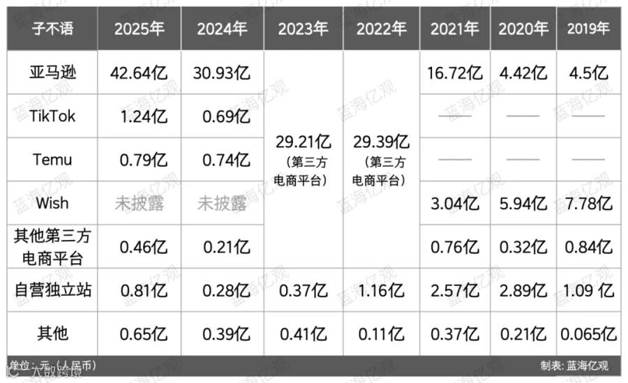 尽管品牌建设加速,子不语对亚马逊依赖度依然极高:2025年其在亚马逊营收为42.64亿元,占总营收(46.6亿元)的91.5%。Cicy Bell、Tankaneo、Saodimallsu、Coutgo、Runcati等主力品牌均高度集中于该平台。