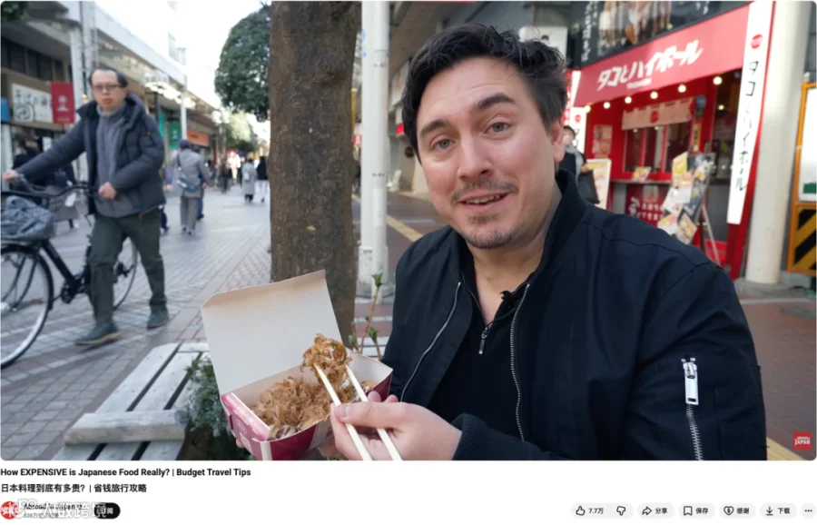合作方式极为克制:Chris从未拍摄定制推广视频,仅在部分视频简介及评论区置顶Sakuraco购买链接与优惠码。例如其爆款视频《日本料理到底有多贵?|省钱旅行攻略》播放量达235万,点赞7.7万,评论2722条,虽无硬广露出,却带来远超预期的实际转化。