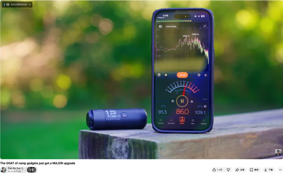 为强化可信度,Flextail深度合作专业KOL进行真实测评。如YouTube户外博主Dan Becker(50.5万粉丝),以亲身经历引出新品Zerp Pump——他因旧款Thermarest气泵无法适配新款垫子,转而选用Flextail产品,并通过开箱、实测、技巧分享全流程验证其性能:不仅计时对比充气速度,更使用分贝仪证实其噪音控制远超竞品。