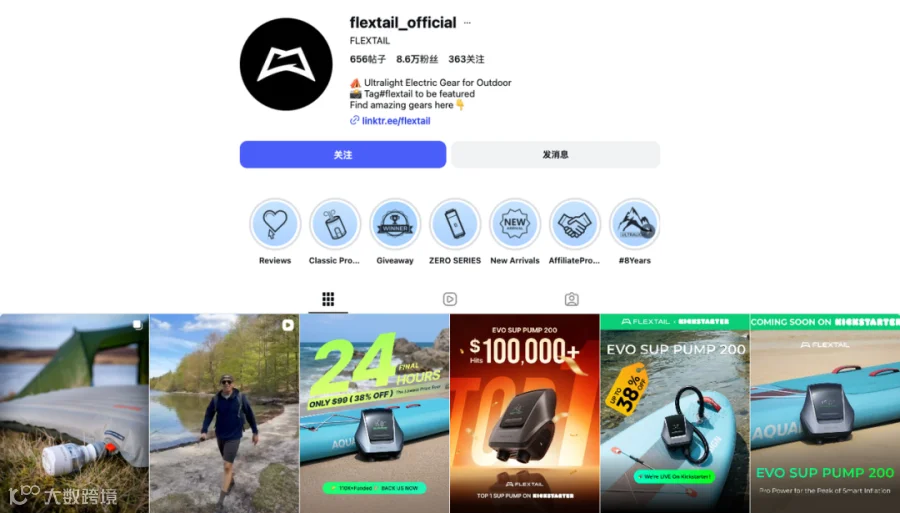 Flextail依托Instagram、TikTok等社媒平台,以场景化叙事替代参数堆砌,完成用户心智重塑。