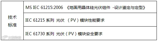 马来西亚的MS标准是等同采用IEC标准,如MS IEC 61215:2006为等同采用IEC 61215:2005。在光伏组件的认证和测试中,马来西亚则直接采用IEC标准。
