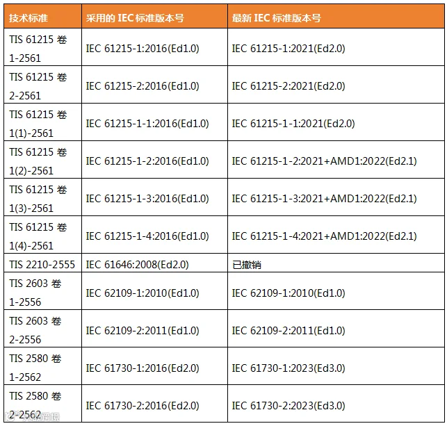 泰国的TIS标准都是等效或等同采用IEC标准,但所采用的IEC标准的版本没有跟国际标准同步更新,导致标准版本差异,如表2所示。