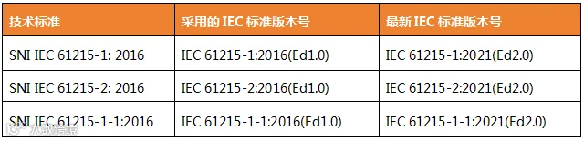 表4 SNI标准所采用的IEC标准与IEC标准最新版本