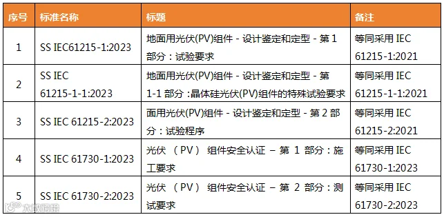 新加坡光伏组件的相关为直接或等同采用IEC标准。