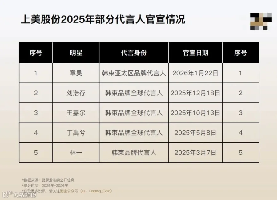 2025年,韩束密集签约3位全球品牌代言人,实行“季抛式”明星策略。短期拉升销量,但加剧流量依赖——粉丝为偶像买单,非为品牌忠诚;合约到期或舆情爆发,销量即断崖下跌。