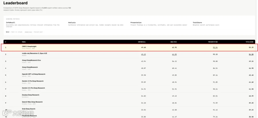 继上个月在DeepResearch Bench基准测试中斩获国内第一后,中国移动自主研发的九天DeepInsight深度研究智能体,在全球权威评测榜单DeepResearch Bench II中力压群雄,正式登顶全球第一! 这标志着我国在复杂AI认知与高阶科研自动化领域实现了真正的超越与自主可控。
