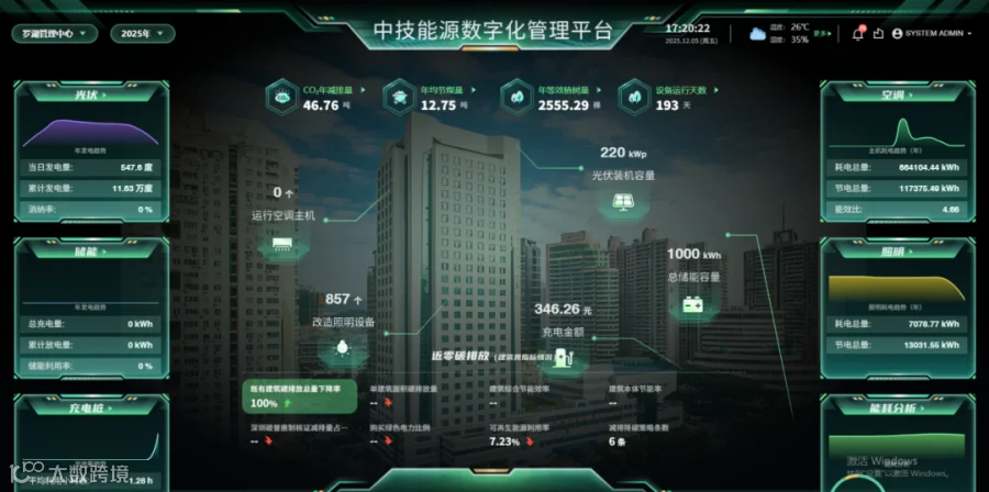 在双碳管理平台方面,平台集成能源计量、碳排放管理、设备运维等多项功能,依托数据可视化分析、能效评估与智能预警,实现建筑能源系统的精细化管理与科学决策支持。
