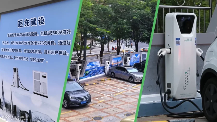 在超充系统方面,配备480kW超充设备,1把600A液冷超充枪、4把120kW快充枪及2台V2G充电桩,全面兼容新老国标车型,支持大功率单/双枪充电,同时具备在线故障诊断、OTA远程升级、安全保护告警等智能化功能。