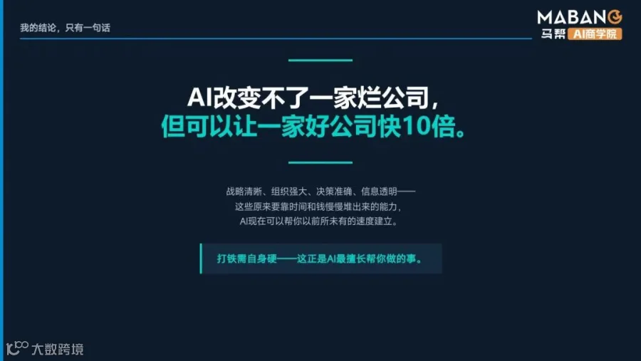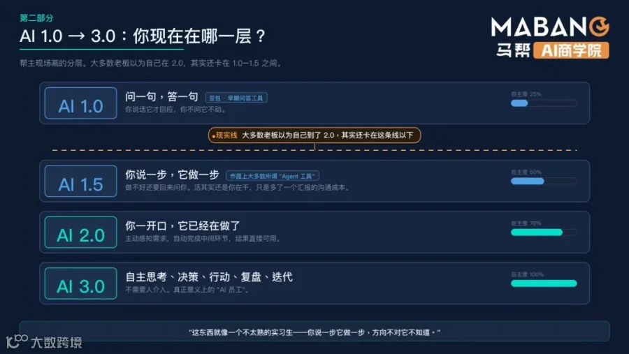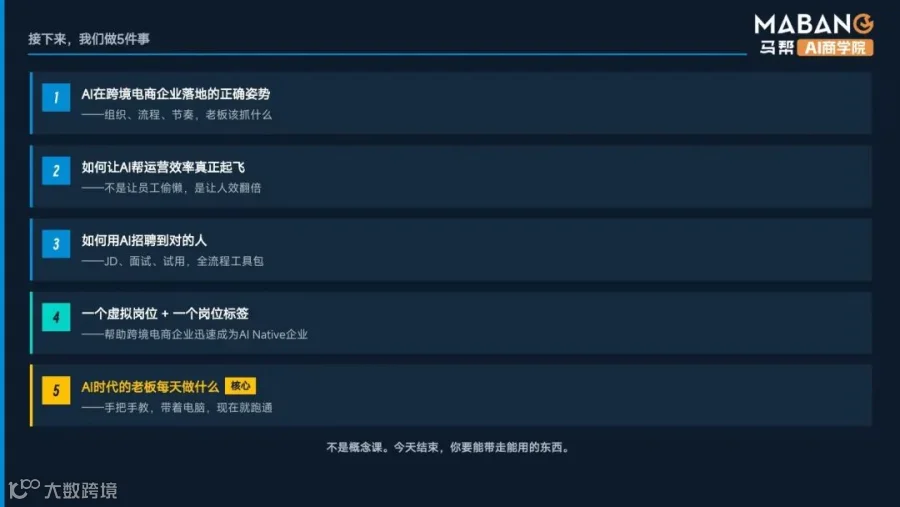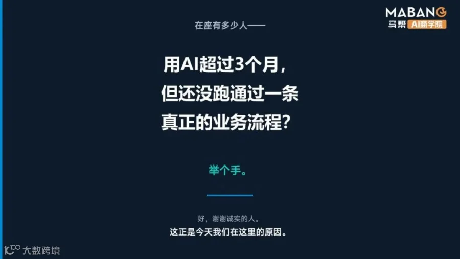活动实证:全程参与者无一离场,多人现场启动AI流程改造。马帮AI跨境商学院将持续输出可落地的AI应用方法论,助力企业将技术变革转化为确定性增长。