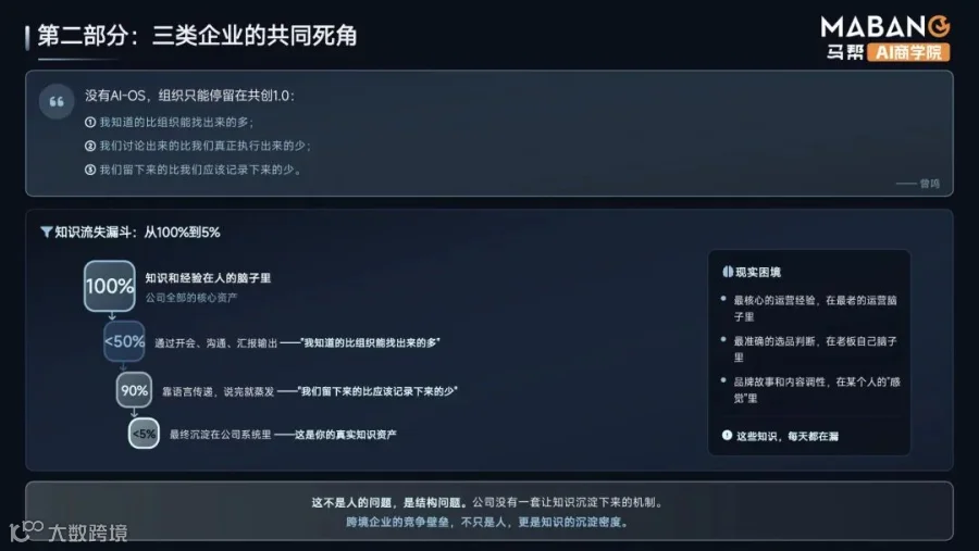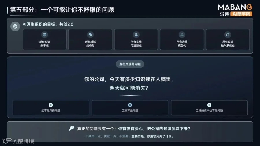 核心结论:AI无法改变低效组织,但能使高质企业效率提升10倍。关键在于构建可沉淀、可复用的知识资产体系。