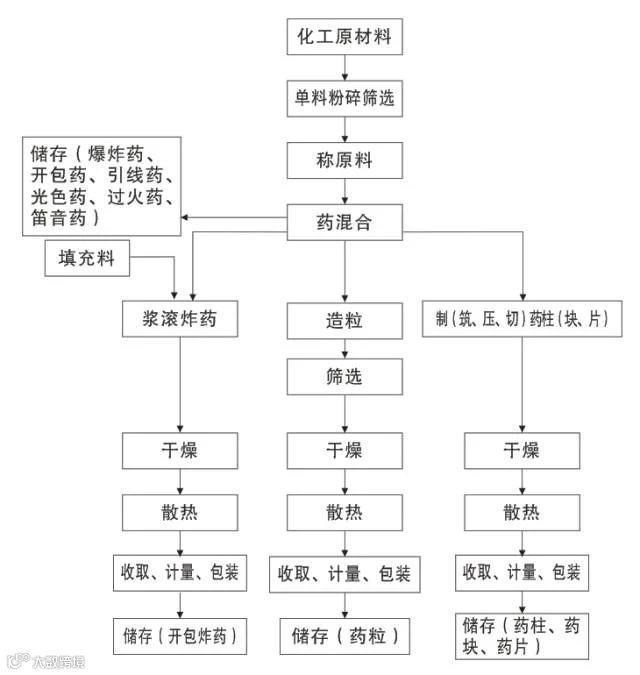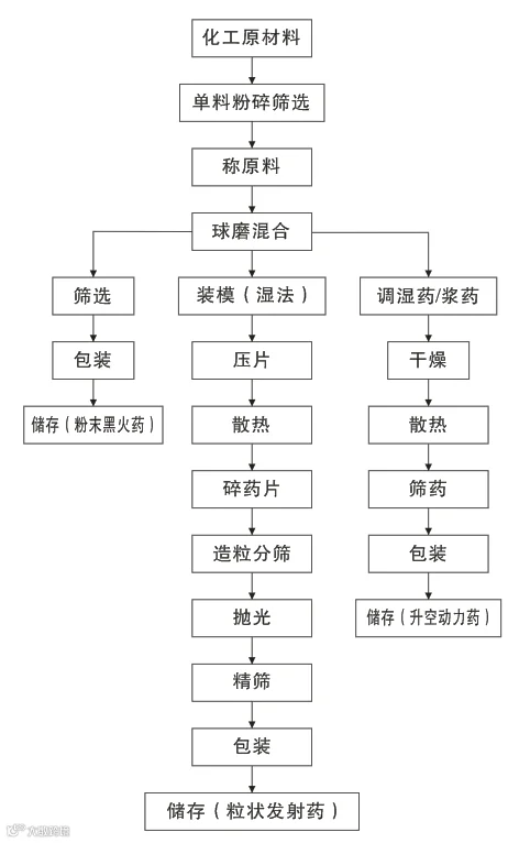 (粉状黑火药、粒状发射药、升空动力药)