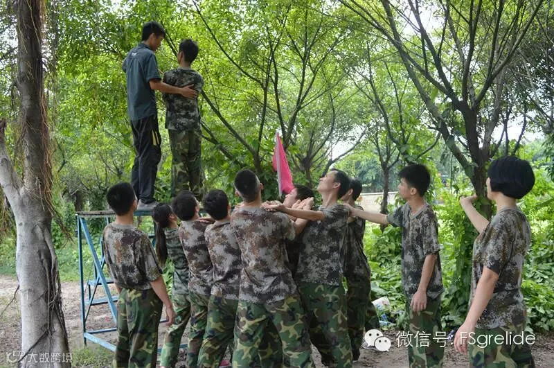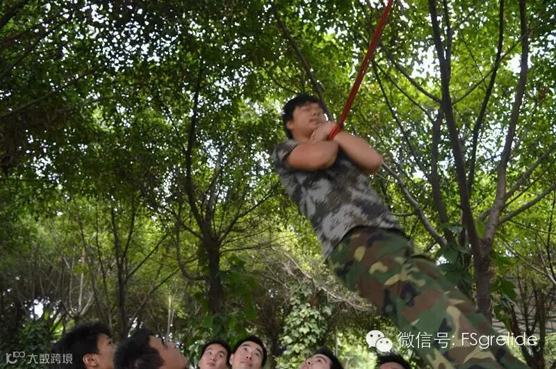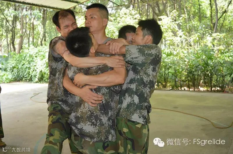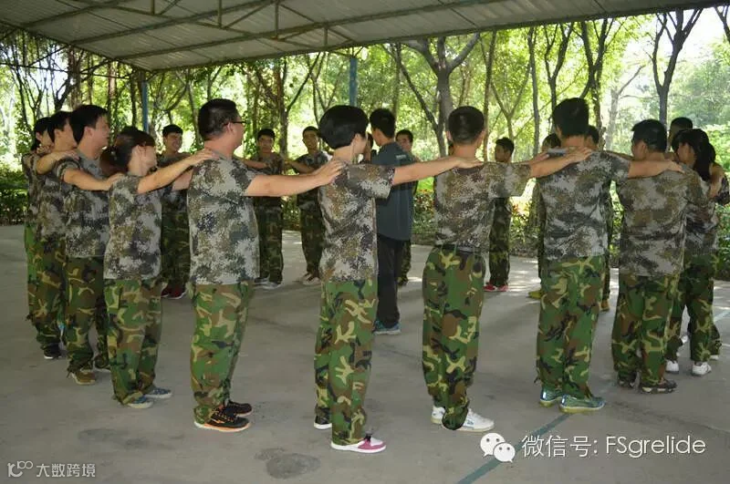 早上9点我们正式走进户外拓展培训基地,穿上了统一的迷彩军装后使我们更像是一个全新的团体。由于我们大部分队员都是第一次参加类似的户外拓展培训活动,所以在一开始的集合与呼喊口号的过程中整个队伍都显得有些凌乱与拘谨,而教练在发现这种情况后,通过不断的让我们快速变换队形、快速躲闪等小游戏,使我们在不知不觉之中全身心的投入到了这次培训活动当中,忘记了我们身上一开始所带有的“矜持”。