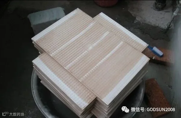3、 泡水处理,泡水就是将釉面砖进行充分的吸水过程,因其吸水率达到10%左右,不泡水会导致砂浆里的水分瞬间被瓷砖吸收,导致粘结度下降,容易出现空鼓、脱 落。由于玻化砖的吸水率小于0.5%,基本上是相当于不吸水,所以泡水与不泡水没有什么区别!玻化砖在铺贴的时候,不需要泡水,直接铺贴!