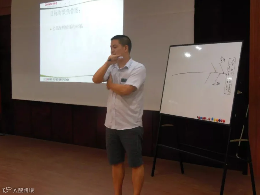 对鱼骨图有了初步的了解和运用后,林老师让学员们活学活用,就以“全员改善”为目标,大家各抒己见,为目标出谋划策。