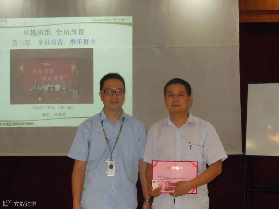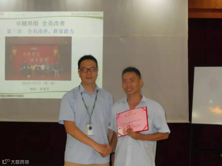对之前评审通过并获奖的“一页纸改善项目”的项目申请人进行颁奖表扬。本次评审通过的项目中,获得一等奖的项目有2个,二等奖的项目有7个,三等奖的项目有6个;冯总为获奖同事颁奖。