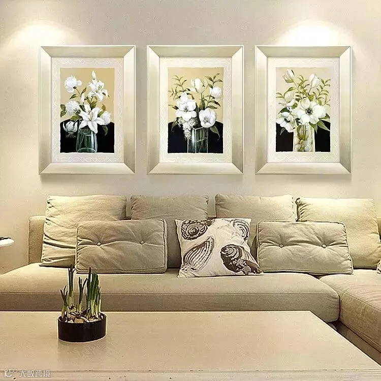 推荐 1:艺术装饰画挂在人眼可以平视的高度,人在一边照镜子的时候,还可以欣赏优美的画作,心情能得到放松。