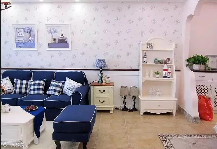 推荐 2:蓝色的墙面清新淡雅,搭配碎花复古地毯别有一番风味,可以让整个空间有一种混搭的时尚感。