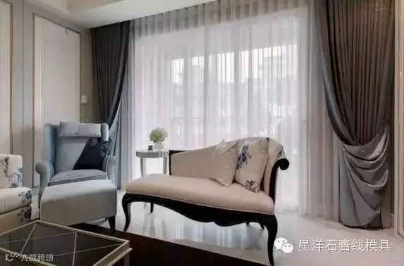 对于层高不高的房屋来说,为了让你的房间高度形成视觉上的错觉,可以通过窗帘杆有效地解决这个问题。这种情况下,窗帘杆应该挂在天花板和墙壁的交界处,而不是直接挂在窗口的上方。否则,窗帘杆与天花板有一定的距离,就会拉低空间的纵深感。特别是深色的窗帘,挂在低矮的窗帘杆上,会使房间显得更局促。