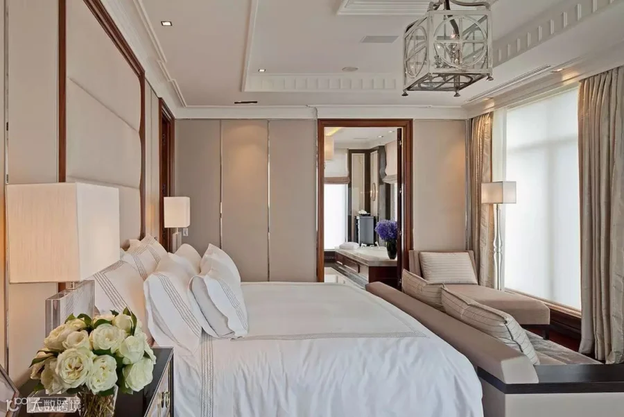推荐 1:天花板和窗帘杆相连,整面墙会产生 " 落地窗 " 的感觉,非常大气。