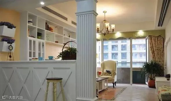 借用柱子作为依靠,在柱子跟墙之间做一个小吧台,对于喜欢情调享受的人来说,这无疑是美观、情调、实用兼收的装饰方式!而对于单身公寓来说,小吧台还可以直接充当餐厅的作用!