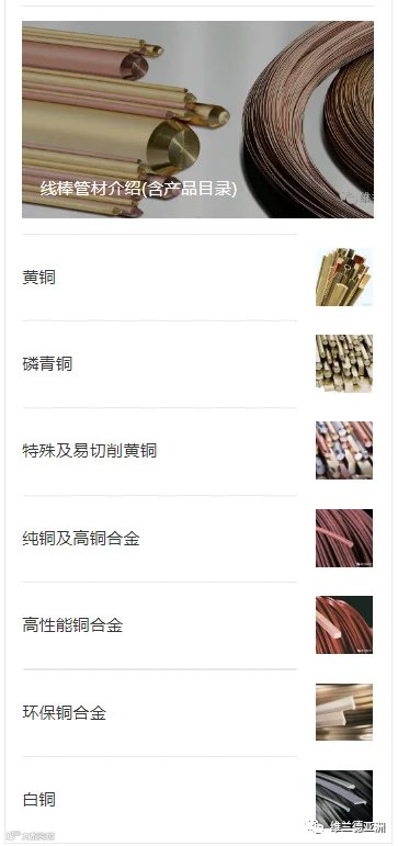 维兰德集团总部设在德国,是全球领先的铜及铜合金半成品制造商。维兰德的铜合金产品享誉世界:铜带、铜板、铜管、铜棒、铜线和异型材料,以及轴承,衬套,翅片管和热交换器材料,是汽车工业、电子、电讯、半导体、建筑和其他诸多行业的重要原材料。